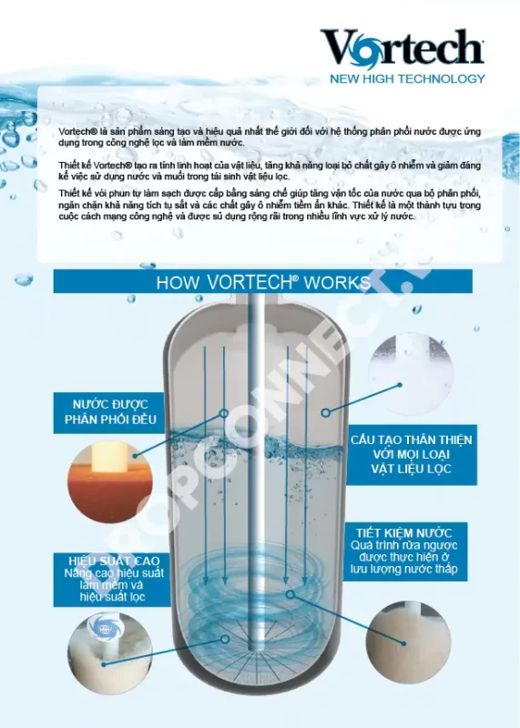 Công nghệ Vortech (còn được gọi là công nghệ xử lý nước Vortech) là một giải pháp lọc nước tiên tiến được phát triển để cải thiện hiệu quả xử lý nước bằng cách tối ưu hóa quá trình loại bỏ các tạp chất và cải thiện chất lượng nước đầu ra. Vortech không chỉ đơn giản là một công nghệ lọc nước thông thường mà còn là một hệ thống thiết kế giúp tăng cường khả năng loại bỏ các tạp chất hữu cơ, vô cơ và vi sinh vật có hại.